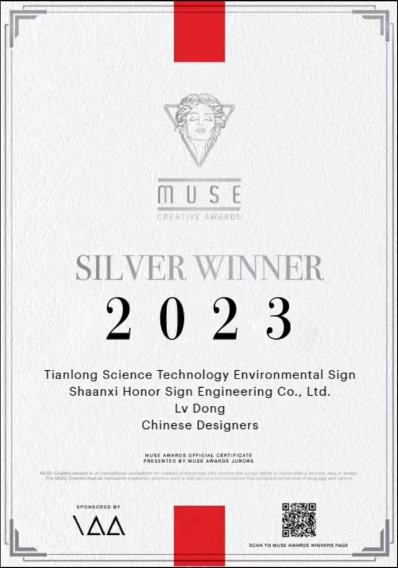近日,由美國國際獎項協(xié)會International Awards Associates(IAA)主辦,全球創(chuàng)意領(lǐng)域極具影響力之一的繆斯設(shè)計獎結(jié)果揭曉,天隆科技VI標(biāo)識中的環(huán)境標(biāo)識榮獲2023年度繆斯創(chuàng)意設(shè)計銀獎。