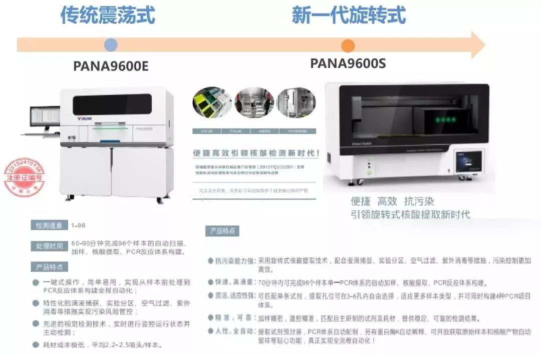 將滅活病毒后的樣本進行核酸提取,產(chǎn)物用于后續(xù)檢測。可采用手工法,也可采用大通量的自動化設(shè)備,如天隆NP968-C核酸提取儀、PANA9600E及PANA9600S全自動化核酸檢測工作站等,更能降低操作人員被感染風險。