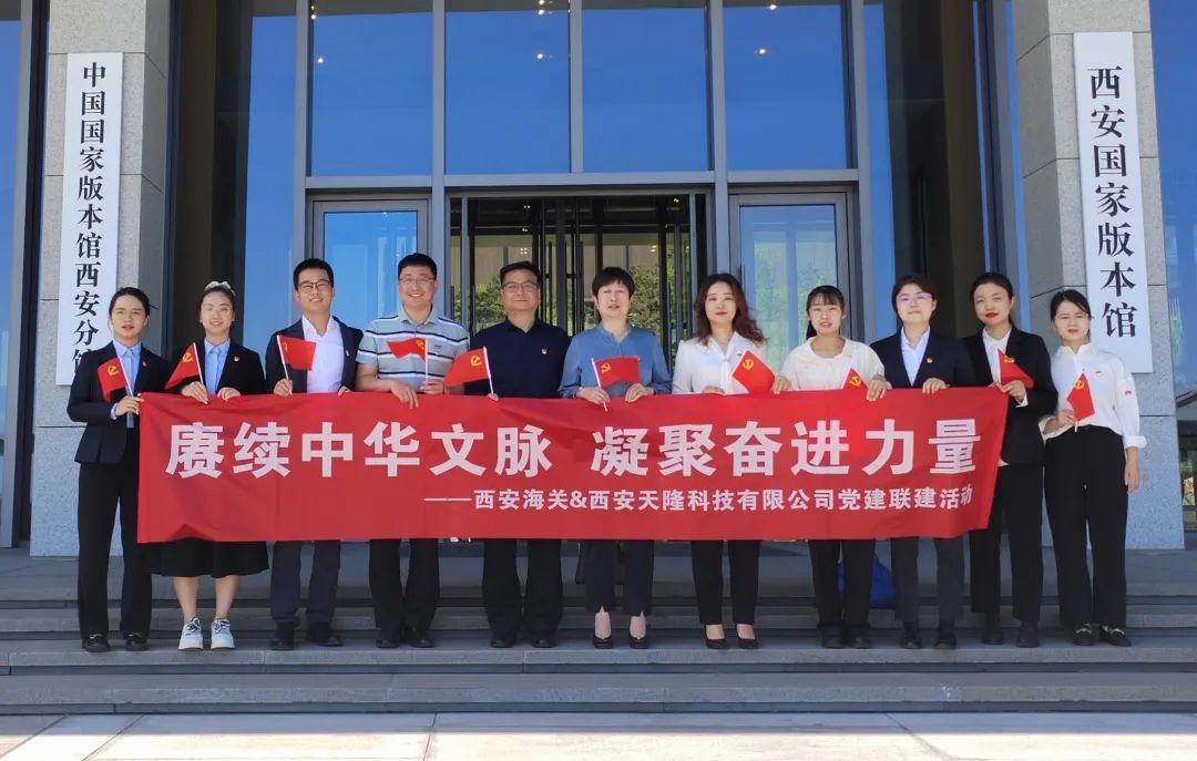 為持續推動學習貫徹習近平新時代中國特色社會主義思想主題教育走深走實,深入學習習近平總書記在文化傳承發展座談會上的重要講話精神,加深公司與西安海關交流合作,鼓勵全體黨員干部努力在傳承中華優秀傳統文化、賡續中華文明薪火中展現責任擔當。4月26日上午,西安天隆黨支部組織黨員代表同西安海關黨員代表共赴西安國家版本館開展“賡續中華文脈,凝聚奮進力量”黨建聯建活動。