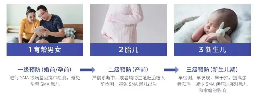 SMA,即脊髓性肌萎縮癥,是此次專家共識(shí)首先推薦篩查的遺傳病。該疾病是一種常染色體隱性遺傳神經(jīng)肌肉病,位居2歲以下兒童致死性遺傳病首位。新生兒發(fā)病率1/6000-1/10000,約每60個(gè)人中就有1個(gè)是SMA致病基因攜帶者。若父母雙方同為攜帶者,每次懷孕孩子有25%的幾率是SMA患者。因此,三級(jí)預(yù)防是把牢SMA防控關(guān)口的重要手段。